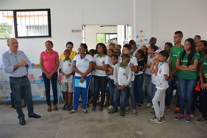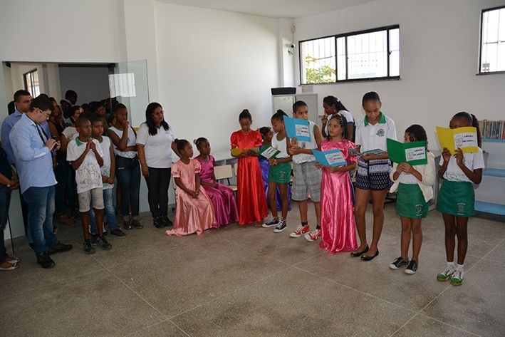 Com a leitura do poema “Leilão de Jardim”, da escritora Cecília Meireles, cinco alunas da Escola Municipal Mãe dos Humildes, que cursam do 3º ao 5º ano, abriram o ato de inauguração do Polo de Cultura Digital da Biblioteca Municipal Manoel Pereira Pimenta, no distrito de Humildes, na manhã desta quarta-feira, 1º de junho. O espaço foi entregue pelo prefeito José Ronaldo de Carvalho.